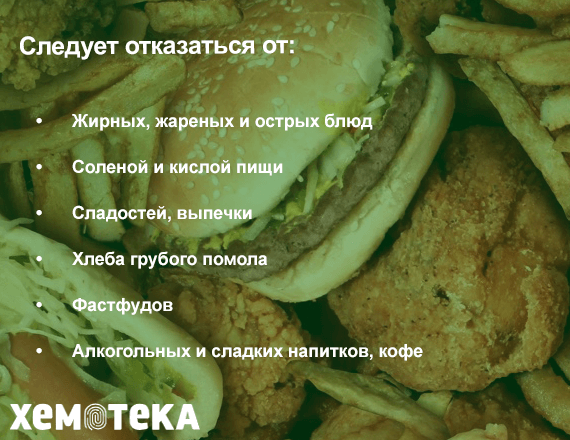 Питание должно быть сбалансированным и дробным. Следует употреблять пищу несколько раз в день, но понемногу. Еда всухомятку противопоказана.