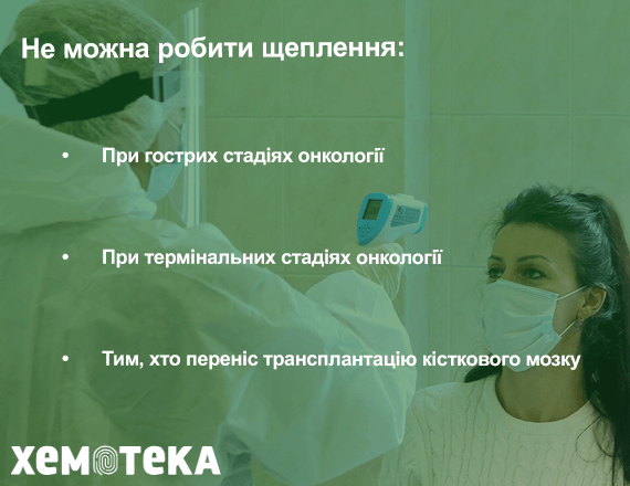 В інших випадках (при проходженні імунотерапії, хіміотерапії, таргетної та променевої терапії) дозволяється вакцинуватися у будь-який час.